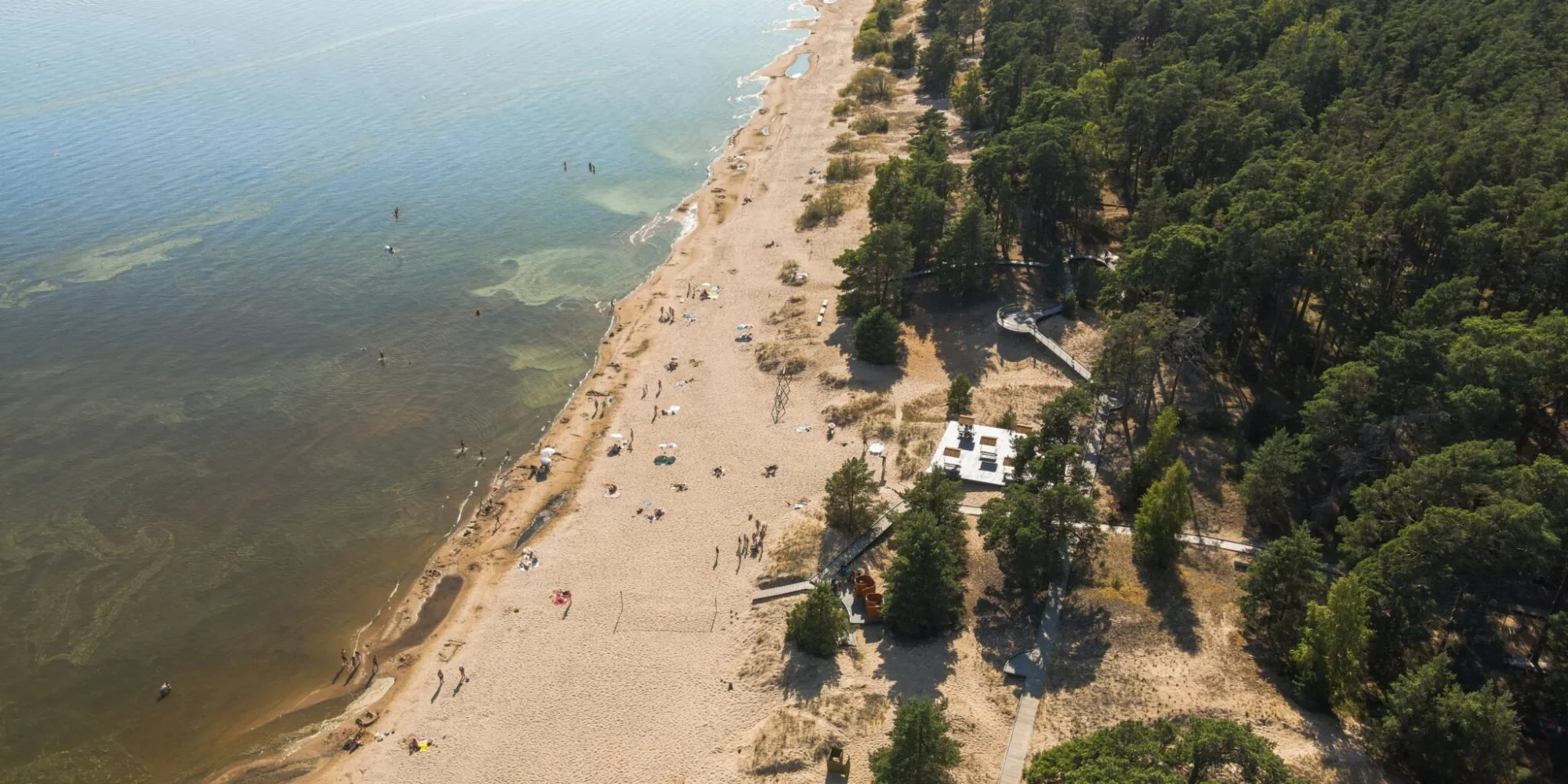- plašu smilšu pludmali bez jūras vējiem